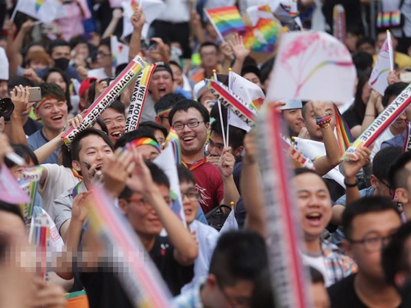 臺灣“中央社”5月24日報道,臺灣地區(qū)同婚“釋憲案”,“大法官”今天做出釋字第748號解釋!八痉ㄔ骸泵貢L呂太郎說,“大法官”認(rèn)為現(xiàn)行法令未保障同性婚姻、“違憲”,要求主管機關(guān)在公告后2年內(nèi),修改相關(guān)法律。