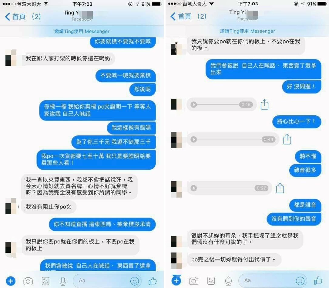 林女PO出與女買家之間的對話。(圖片來源:臺灣“東森新聞云”)