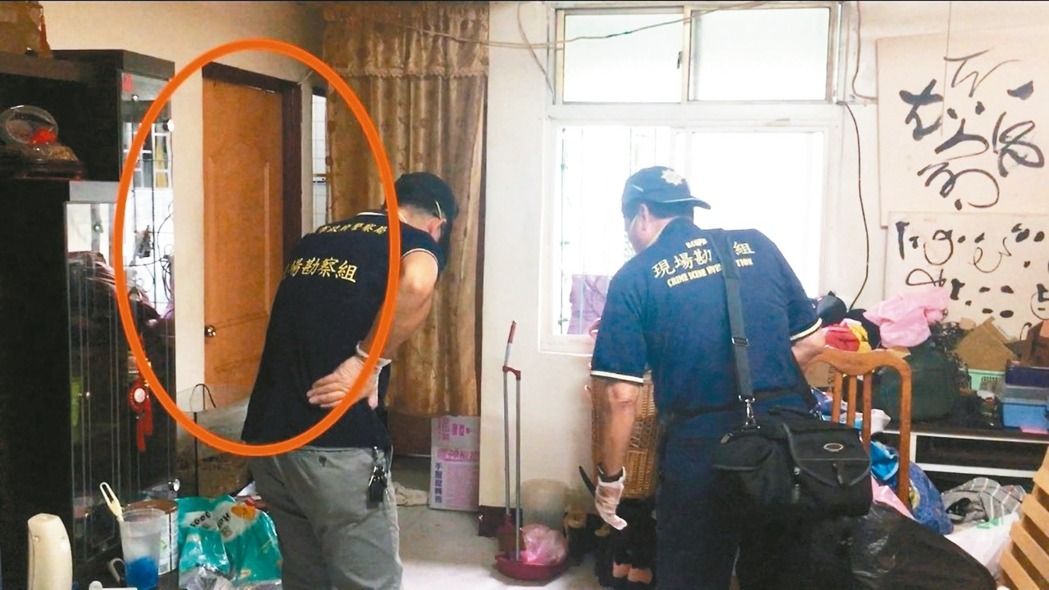 林女將一歲半的男嬰放在另外一間房間(紅圈處),男童疑死亡2天,發(fā)出尸臭,警方到場(chǎng)采證。(圖片來(lái)源:臺(tái)灣《聯(lián)合報(bào)》)
