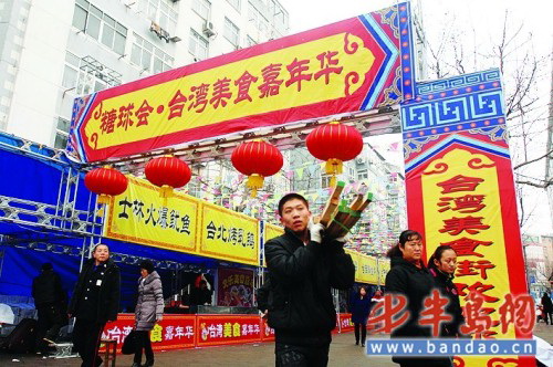 中新網(wǎng)3月5日電 據(jù)青島市臺辦網(wǎng)站消息,3月1日,第21屆糖球會在青島海云庵正式拉開大幕,30萬人首日熱逛糖球會。在靠近糖球廣場的蒙化路專門辟出一條臺灣美食街,久負(fù)盛名的臺北士林夜市的20余種臺灣美食慕名前來趕會。此次參會的臺灣美食很多原料都是專門從臺灣運來的。其中將在上海世博會臺灣館中參展的“度小月?lián)忻妗焙汀膀伦屑濉币铂F(xiàn)身糖球會,市民在家門口就可品嘗到這兩種“世博美食”。