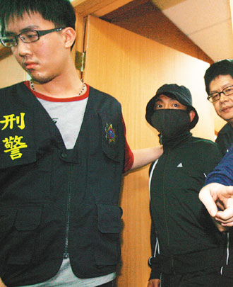 藝人大炳(余炳賢)(中)昨天又因涉嫌持有毒品被逮捕,口罩顏面,回避采訪。