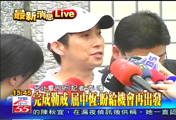 臺藝人屈中恒強(qiáng)制戒毒期滿 表示要改過自新