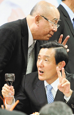 2012年臺灣地區(qū)領導人選舉14日舉行投開票。晚間,在馬英九、吳敦義競選總部舉行記者會,馬英九現(xiàn)身...