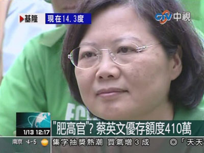 馬英九批評民進黨版18%(臺灣軍公教18%優(yōu)利存款)政策改革造成肥高官、瘦小吏,據(jù)藍營人士透露,民進黨主席蔡英文優(yōu)存額度達410萬元(新臺幣,下同),換算年領優(yōu)惠利息73萬元,在民進黨退休政務官員中,優(yōu)存額度最高,優(yōu)惠利息也最多,屬最肥高官。臺灣世新大學傳播所長游梓翔斷言,如果情況屬實,蔡英文2012年就不必選臺灣地區(qū)領導人了。【詳細】
