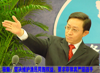| 中共中央臺(tái)辦、國務(wù)院臺(tái)辦主任張志軍表示:5月9日,菲律賓方面再次使用武力,對我手無寸鐵的同胞施暴,槍殺臺(tái)灣漁民兄弟,我們對此感到十分憤慨,并予以強(qiáng)烈譴責(zé)。我們要求菲律賓方面嚴(yán)肅認(rèn)真對待此事,徹查事件真相,嚴(yán)懲兇手,給被害漁民一個(gè)負(fù)責(zé)任的交代。 |