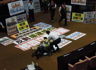 民進(jìn)黨霸占會場擋核四 國民黨:你一離開我就進(jìn)駐
