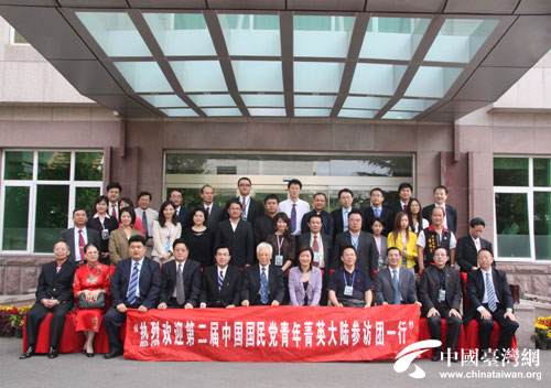參加會見的民革中央領導與“第二屆中國國民黨青年菁英大陸參訪團”成員合影(中國臺灣網(wǎng) 高斯斯 攝) |