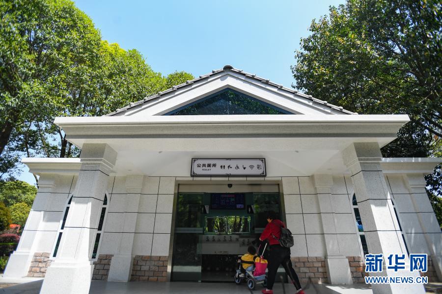 3月24日,市民帶著小朋友準(zhǔn)備進入位于湖南長沙縣星沙中心廣場的智慧廁所。