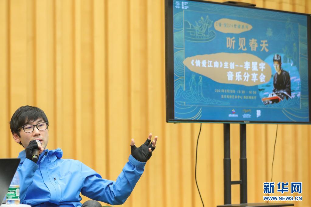 當(dāng)日,主題為“廿肆節(jié)氣 聽(tīng)見(jiàn)春天”的《情愛(ài)江南》主創(chuàng)音樂(lè)分享會(huì)活動(dòng)在北京天橋藝術(shù)中心舉行,拉開(kāi)了天橋藝術(shù)中心春季系列活動(dòng)的序幕。本次音樂(lè)分享會(huì)活動(dòng)是北京文化藝術(shù)基金年度資助項(xiàng)目——“周末藝聚”藝術(shù)推廣系列活動(dòng)的重要活動(dòng)之一。新華社記者 張玉薇 攝