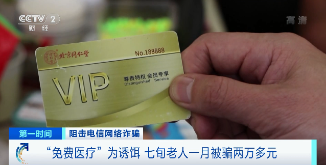 74歲王女士有老年慢性病,能得到國(guó)家級(jí)專(zhuān)家的免費(fèi)醫(yī)療讓她非常高興。對(duì)方稱(chēng),免費(fèi)醫(yī)療名額有限,要交會(huì)費(fèi)和保證金成為貴賓會(huì)員才能享受此項(xiàng)待遇。于是,王女士按要求向?qū)Ψ睫D(zhuǎn)款1080元,兩天后,她收到一張顯示為北京同仁堂的貴賓卡。