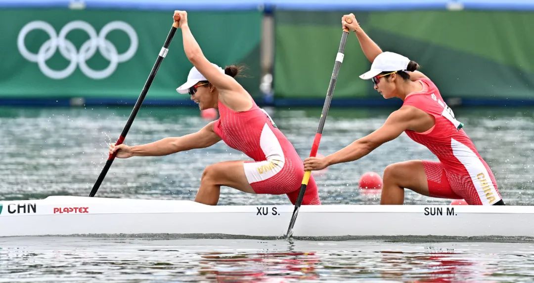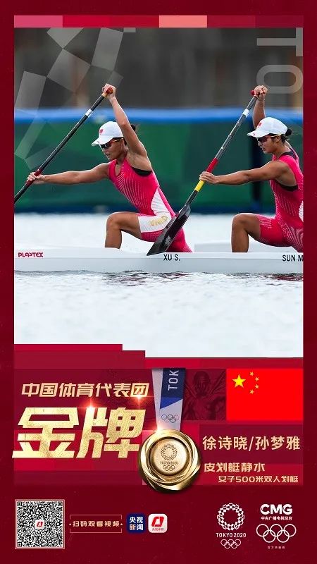 8月7日,東京奧運(yùn)會女子500米雙人劃艇決賽中國組合徐詩曉/孫夢雅以1分55秒495奪得金牌