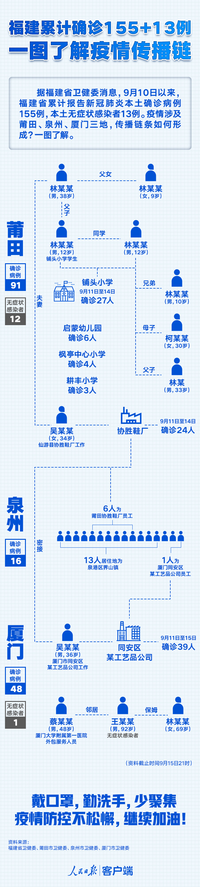 福建累計(jì)確診155+13例,一圖了解疫情傳播鏈