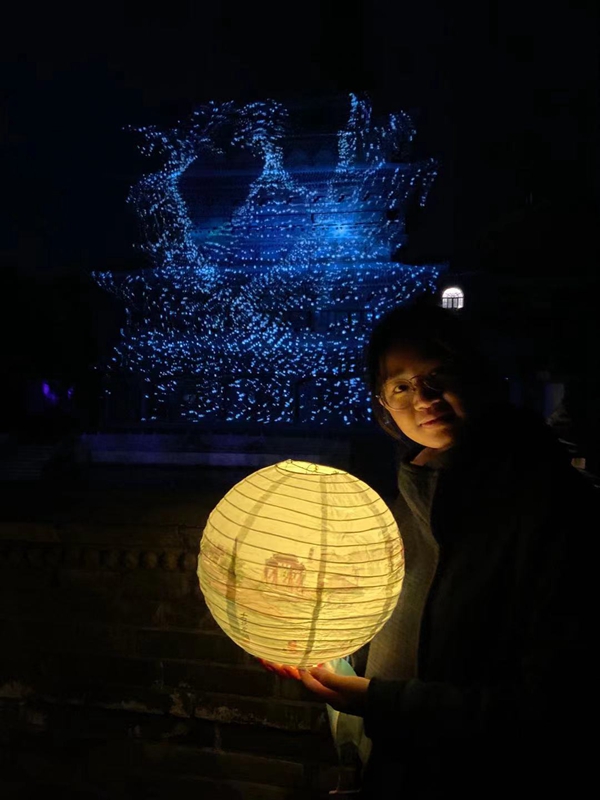天邊是華麗的朱紅,遙遠(yuǎn)的地方已有些深藍(lán),提著燈籠在人流中穿行,一步步的注視著夜色降臨。行人都集中到一處去了,廣場上音樂響著,街道兩旁商鋪更是熱鬧的很。但這樣的喧囂只是一時(shí)的,但天黑透時(shí),游人便稀疏了起來。走在安靜的石板街,一晚月圓照弄堂,夜色里籠罩的是陳年的古巷。白日喧鬧的戲園不聲不響,空蕩蕩的上鎖了廂房。又與那老樹重逢了,白月光下他愈發(fā)的滄桑和沉穩(wěn),更是多了幾分古韻。過路的行人注視著他,不覺停住了腳步,他有力的枝干撐著夜色的天空,鳥兒縮在他茂密的葉片間,像是被一位慈祥的祖父守護(hù)著。