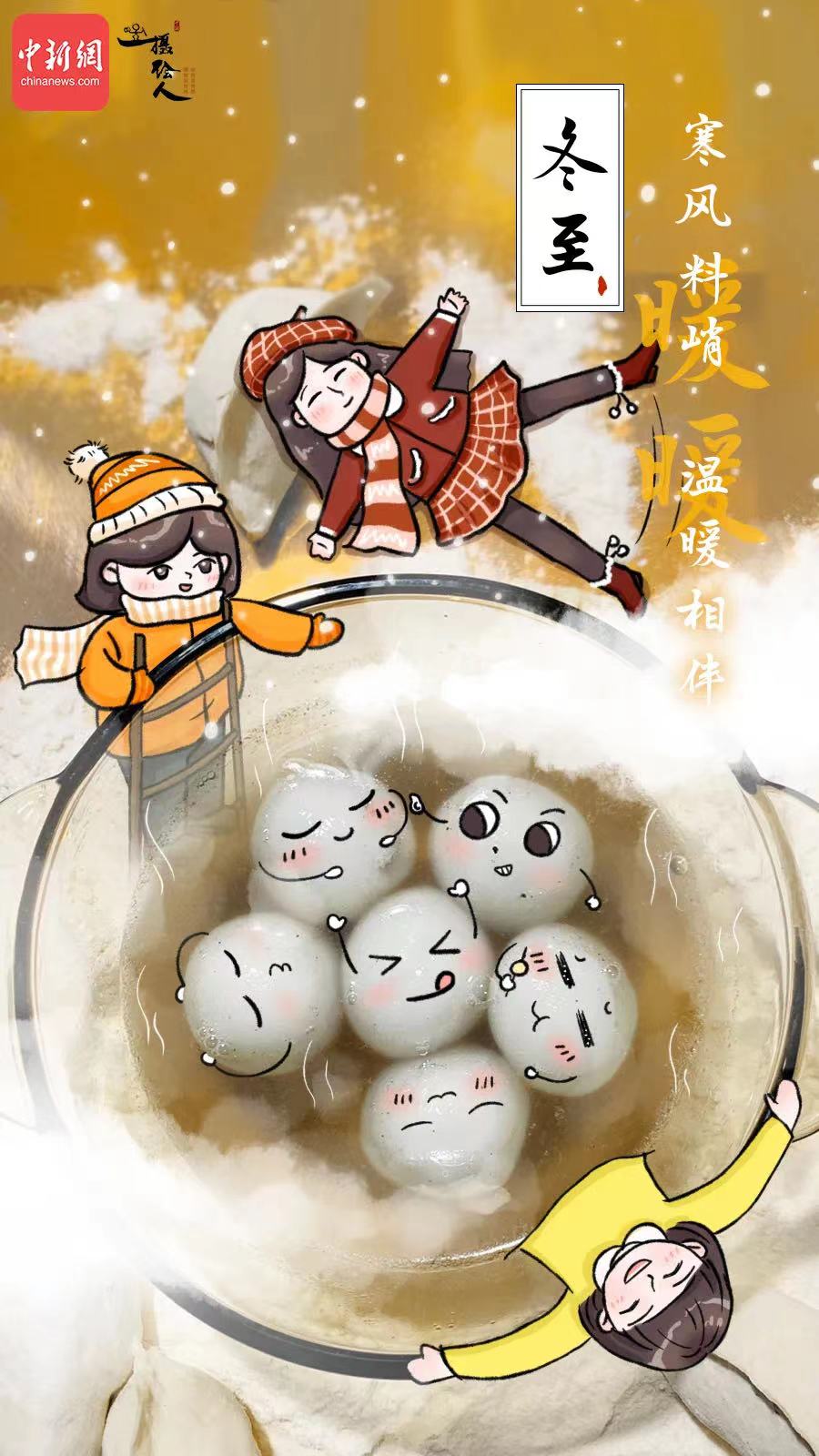 冬至對中國人來說,還是一個重要的節(jié)日,冬至是古人計算二十四節(jié)氣的起點(diǎn),被視為冬季的大節(jié)日,人們在這一天祭祖、賀冬,所以又有“冬至大如年”的說法。在北方,餃子是冬至的“標(biāo)配”, 而在南方,人們喜歡在這一天吃上一碗熱氣騰騰的湯圓,寓意其樂融融、團(tuán)團(tuán)圓圓。
