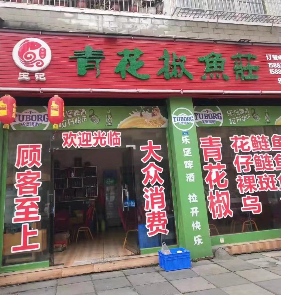 王記青花椒魚莊的門頭店招 受訪者供圖