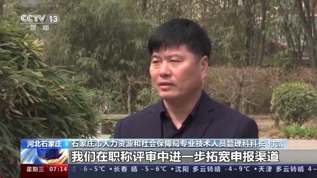 石家莊市人力資源和社會保障局專業(yè)技術(shù)人員管理科科長 付凱:我們在職稱評審中,進(jìn)一步拓寬申報渠道。對高校畢業(yè)生職稱認(rèn)定從原來一年一次的集中初聘認(rèn)定,改為現(xiàn)在一月一次的考核認(rèn)定,實現(xiàn)人才職稱的即報即審,對穩(wěn)定高校畢業(yè)生就業(yè)起到了保障作用,使得人才引得來,留得住。