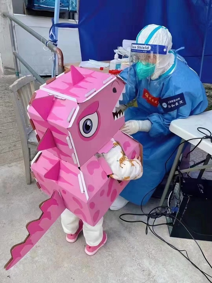 “紙板恐龍”做核酸,圖片來自網(wǎng)絡(luò)