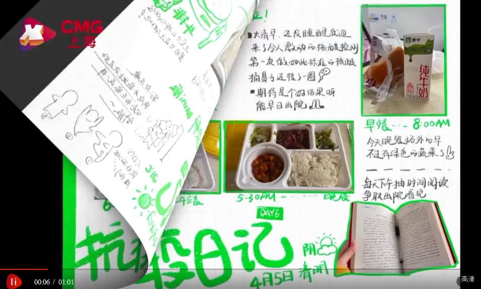 4月8日,在上海市徐匯區(qū)漕寶路方艙醫(yī)院治療了9天之后,一位叫張譯丹的姑娘順利出院。作為一名95后設(shè)計師,她把在方艙醫(yī)院的每一天都畫成了畫。9篇“方艙日記”里,是她對這段特別生活的記錄,也充滿了對“大白”們甜甜的謝意。