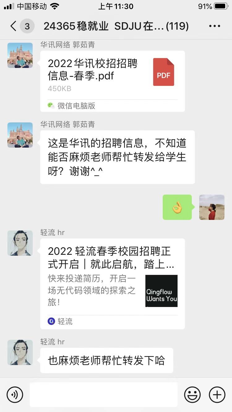 “請有招聘計劃的單位以接龍方式提出招聘需求,學(xué)校將收集有意向的學(xué)生簡歷,發(fā)在此群!4月8日,同濟大學(xué)學(xué)生就業(yè)指導(dǎo)中心分別與中建集團、中交集團、上汽集團、東方電氣集團等跟學(xué)校長期合作的重點單位建起了“簡歷直推微信群”,希望能面向今年仍有招聘計劃的單位和尚未落實就業(yè)單位的同濟畢業(yè)生進行精準(zhǔn)匹配。