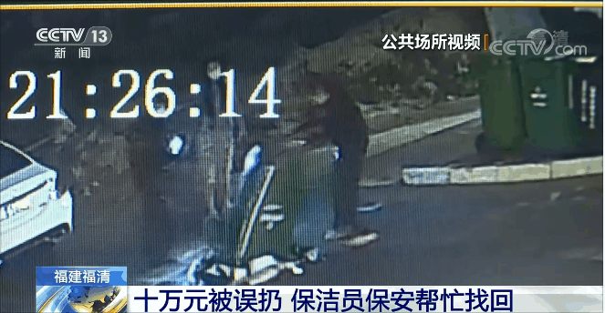央視網(wǎng)消息:近日,在福建福清一位市民誤將裝錢的袋子丟掉,損失了10萬塊錢,好在熱心保潔員和保安及時(shí)找回,完璧歸趙。
