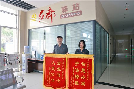 審判、執(zhí)行團隊負責人接受當事人送來的錦旗。