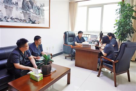 院長張磊與審判、執(zhí)行團隊成員研究案情。
