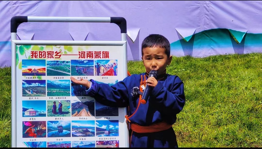 青海新聞網(wǎng)·大美青海客戶端訊 (記者 李娜楊紅霞報道) “我的家鄉(xiāng)在中國西部,這里有一片非常美麗的大草原,大家都喜歡叫她‘河南蒙旗’,這里有藍天、白云、草原、牛羊、湖泊、河流……”來自黃南藏族自治州河南蒙古族自治縣中心幼兒園五歲半的觀卻東珠作為“講解員”,正聲情并茂的向老師、同學以及家長介紹自己的家鄉(xiāng)。