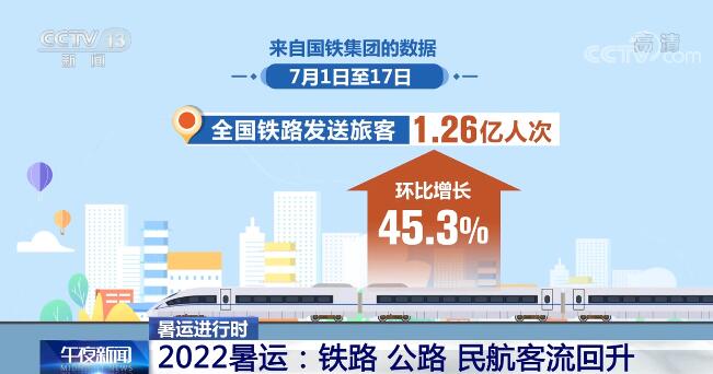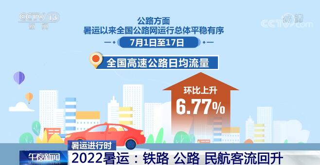 央視網(wǎng)消息:2022年暑運7月1日正式開啟,到8月31日結(jié)束,為期62天。目前,暑運已啟動了半個多月,統(tǒng)計數(shù)據(jù)顯示,全國鐵路旅客發(fā)送量、民航日均旅客運輸量以及全國高速公路日均流量環(huán)比均有所上升。