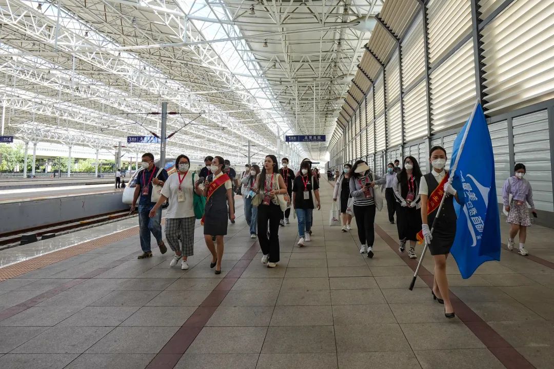 “發(fā)現(xiàn)團(tuán)”從北京北站出發(fā),登乘粉色涂裝動(dòng)車組——“懷密號”,開啟賞心悅目的“發(fā)現(xiàn)之旅”。