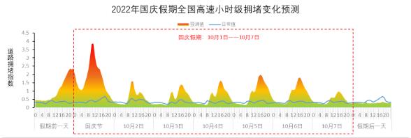 △2022年國慶假期高速公路網(wǎng)小時(shí)擁堵變化趨勢(shì)
