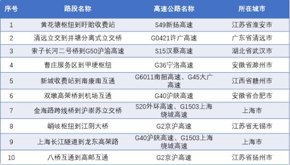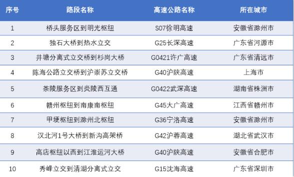 △國慶假期返程易擁堵緩行路段