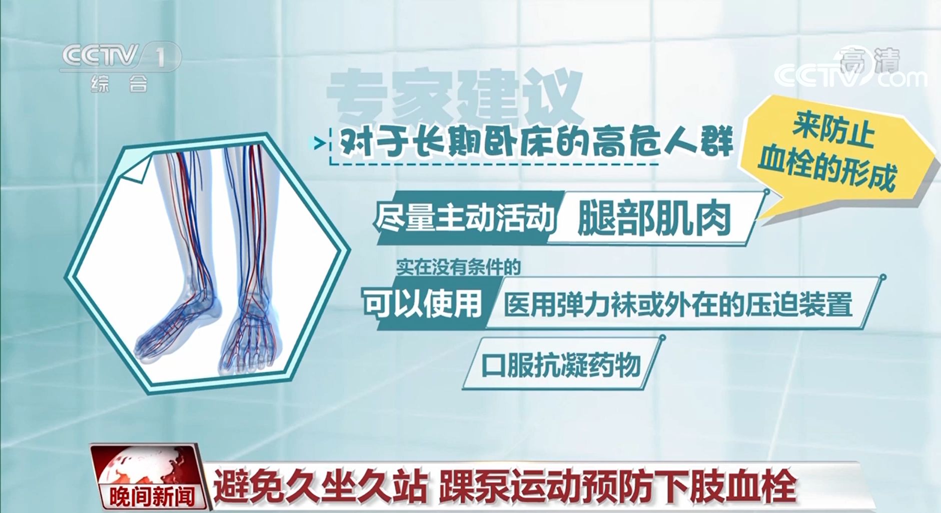 首都醫(yī)科大學宣武醫(yī)院血管外科主任醫(yī)師 佟鑄:長時間在那兒坐的話,我們可以做一些踝泵運動,比如說通過下肢、腿伸直的狀態(tài)下膝蓋伸直,在這種狀態(tài)下做背屈動作,從而讓小腿后面的肌肉能夠發(fā)揮肌肉泵的作用,促進靜脈回流。