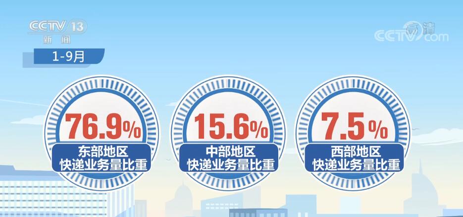 國家郵政局數(shù)據(jù)顯示,1—9月,東、中、西部地區(qū)快遞業(yè)務量比重分別為76.9%、15.6%和7.5%。與去年同期相比,東部地區(qū)快遞業(yè)務量比重下降1.4個百分點;中部地區(qū)快遞業(yè)務量比重上升1.3個百分點;西部地區(qū)快遞業(yè)務量比重上升0.1個百分點。