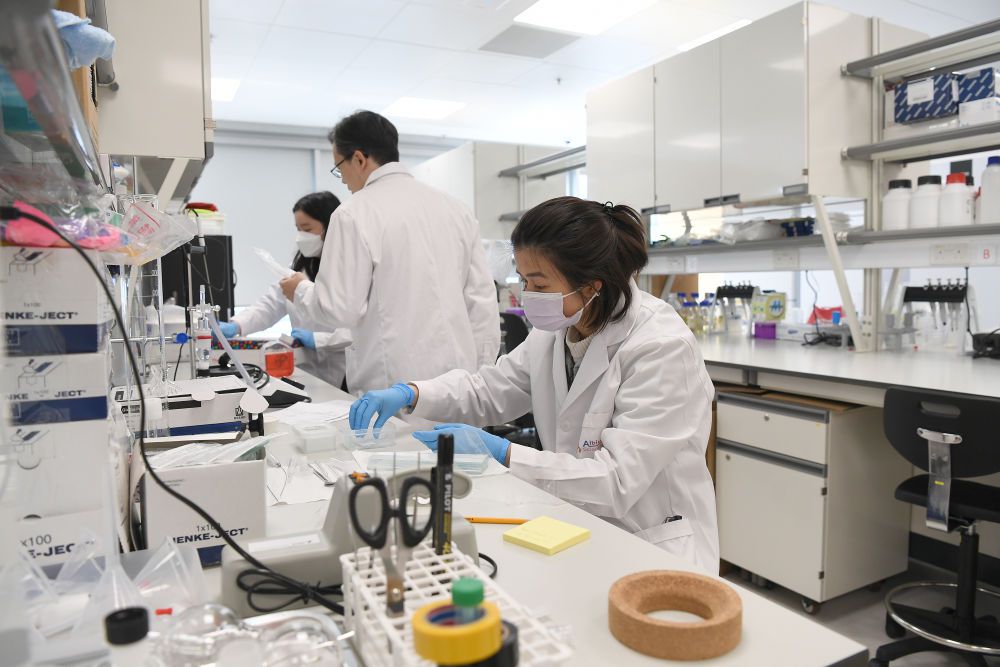 3月3日,工作人員在香港科學(xué)園生物醫(yī)藥科技培育計(jì)劃 (Incu-Bio) 共享實(shí)驗(yàn)室工作。 新華社記者 陳鐸 攝