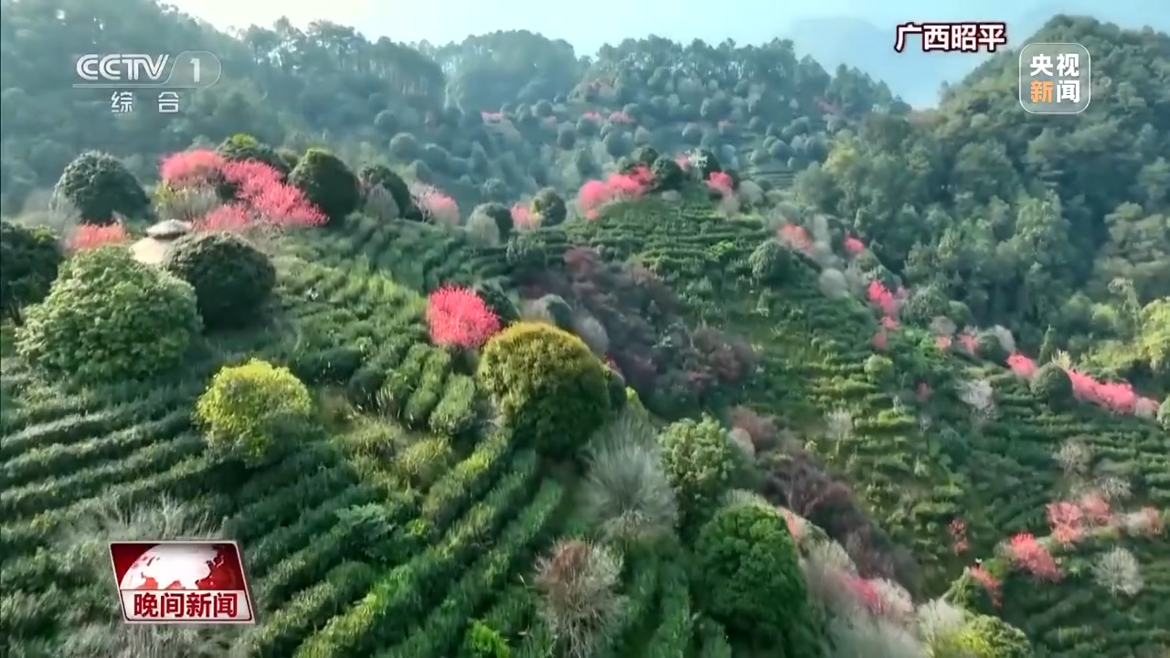 廣西昭平丨茶園疊翠桃花紅 游人如織賞美景