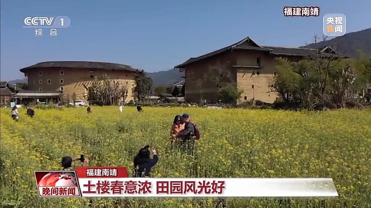 這兩天,福建省南靖縣土樓景區(qū)的油菜花競(jìng)相開放。成片的油菜花與土樓交相輝映,游客們?cè)诨êV新,陶醉其中,盡情享受怡人的田園風(fēng)光。