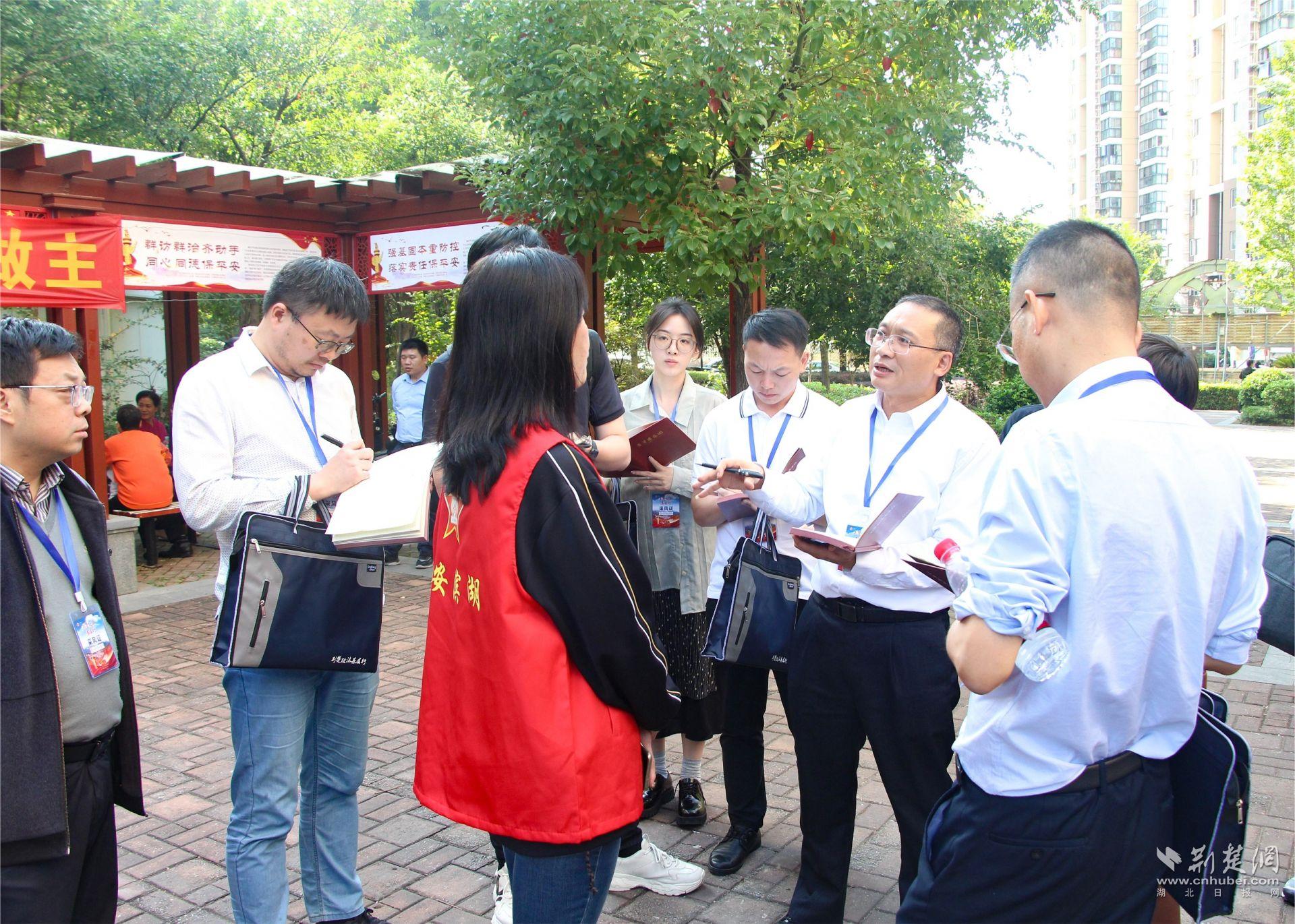 10月16日下午,“荊楚政法基層行”宣傳調(diào)研團(tuán)走進(jìn)武昌區(qū)水果湖街道濱湖社區(qū),探尋他們?nèi)悍廊褐、共建共享的秘密?/p>