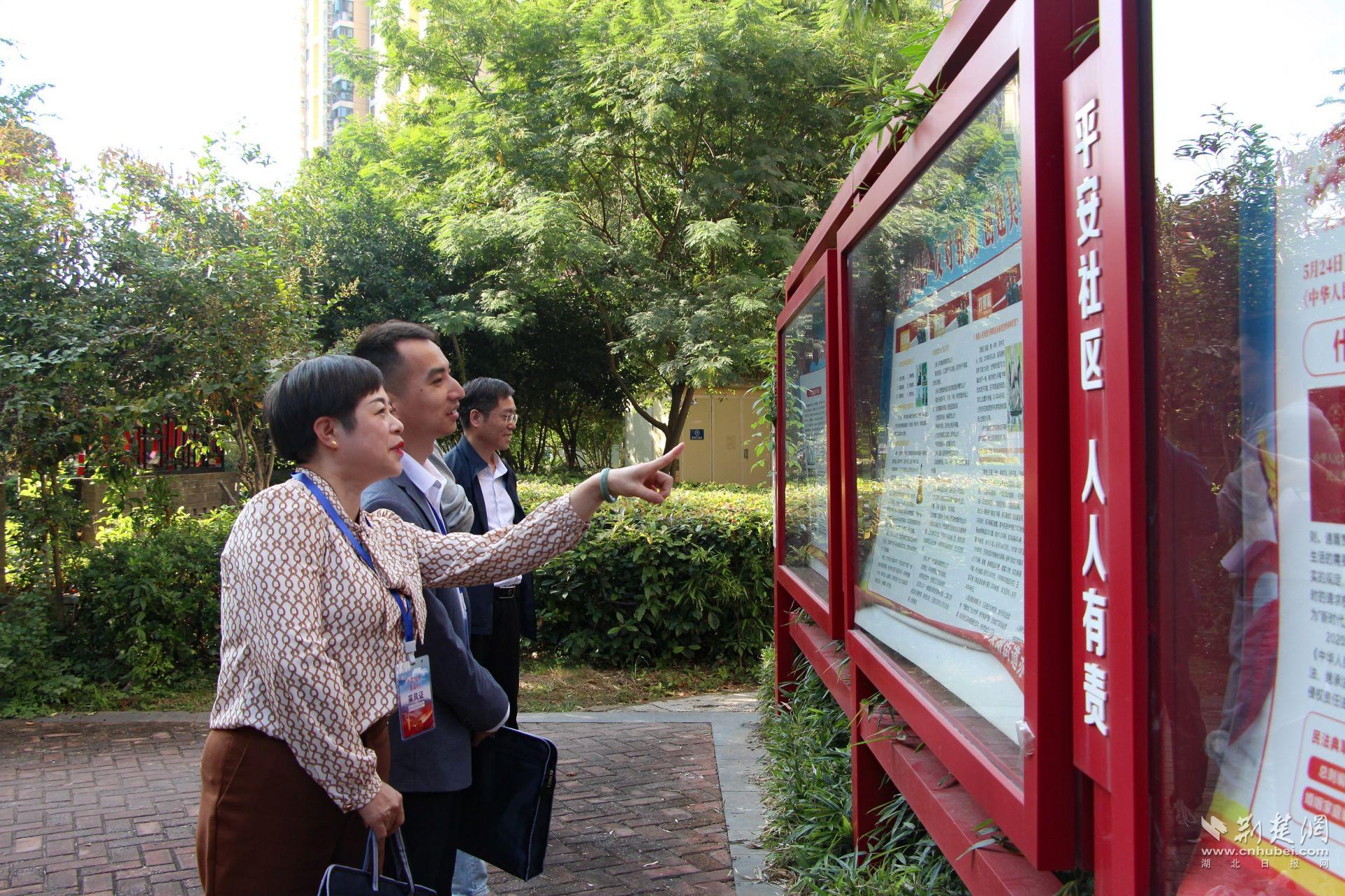 “荊楚政法基層行”宣傳調(diào)研團(tuán)參觀濱湖社區(qū)法治長廊。周光潔 攝
