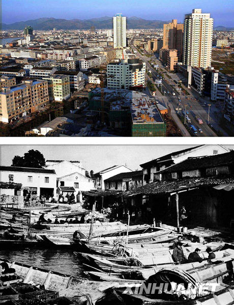 上圖:位于東海之濱的溫州蒼南縣龍港鎮(zhèn)正沐浴在陽光下(攝于2002年11月17日)。