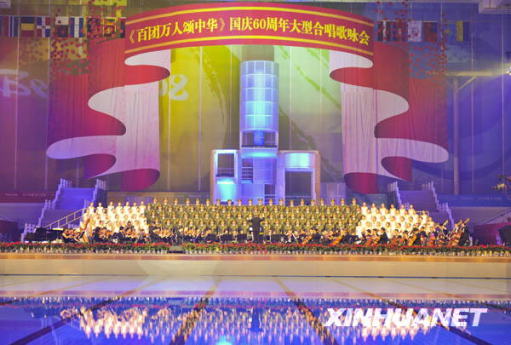 “百團(tuán)萬(wàn)人頌中華”國(guó)慶60周年大型合唱歌詠會(huì)在京舉行。新華社記者謝環(huán)馳攝