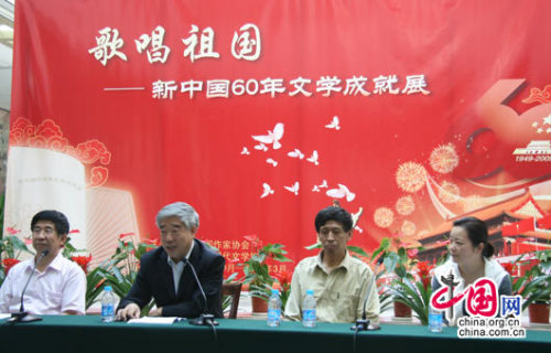 在新聞發(fā)布會(huì)上,中國現(xiàn)代文學(xué)館常務(wù)副館長李榮勝向記者介紹,今年是新中國成立60周年,也是中國作家協(xié)會(huì)成立60周年。60年來,中國廣大作家始終與祖國同呼吸、共命運(yùn),始終牢記自己的使命和責(zé)任,勇敢地面對了前進(jìn)道路上的各種困難與挑戰(zhàn)。在中國共產(chǎn)黨的領(lǐng)導(dǎo)下,中國特色社會(huì)主義文學(xué)為新中國的歷史書寫了獨(dú)特的篇章。這一展覽就是力求全面回顧新中國文學(xué)所走過的60年不平凡歷史、全面展示60年文學(xué)的輝煌成就、系統(tǒng)總結(jié)60年文學(xué)的成功經(jīng)驗(yàn),并希望從一個(gè)獨(dú)特側(cè)面展現(xiàn)新中國60年的偉大成就,為中華人民共和國60周年獻(xiàn)禮。