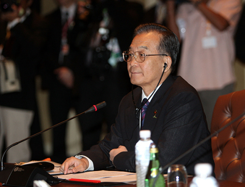 10月25日,中國(guó)國(guó)務(wù)院總理溫家寶在泰國(guó)華欣出席第四屆東亞峰會(huì)。新華社記者劉衛(wèi)兵攝