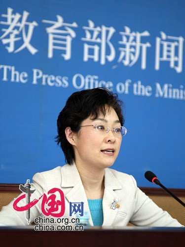 教育部新聞發(fā)言人續(xù)梅主持26日的新聞發(fā)布會(huì)。中國網(wǎng) 楊佳