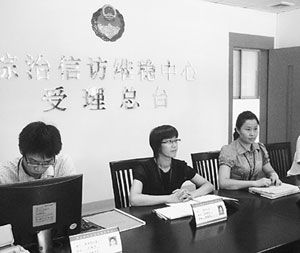 資料圖片:10月27日,廣東省佛山市南海區(qū)獅山鎮(zhèn)綜治信訪維穩(wěn)中心,工作人員在受理總臺(tái)。(記者 裴智勇攝)