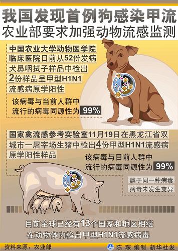 圖表:我國(guó)發(fā)現(xiàn)首例狗感染甲流 農(nóng)業(yè)部要求加強(qiáng)動(dòng)物流感監(jiān)測(cè) 新華社發(fā)