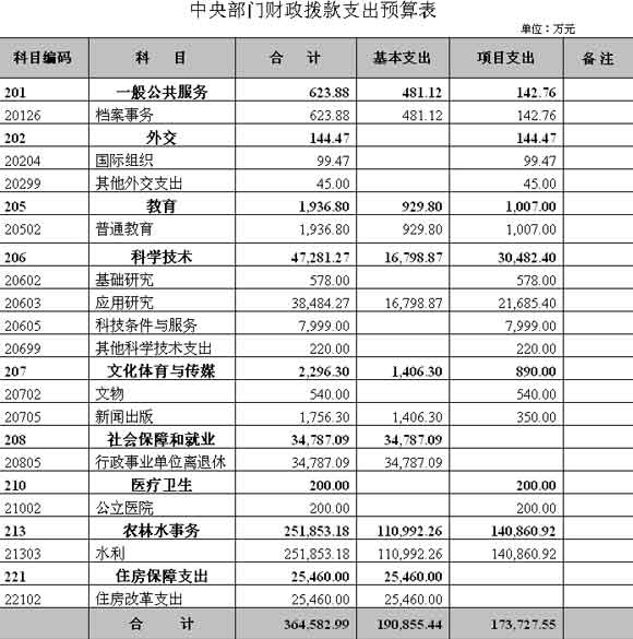 水利部2010年財(cái)政撥款支出預(yù)算表
