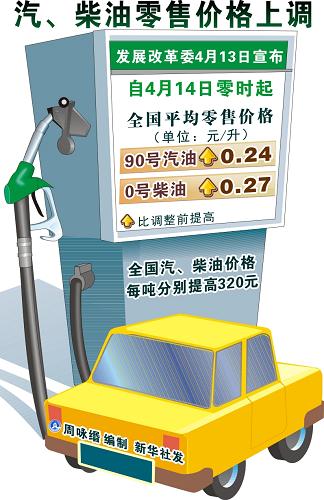 圖表:汽、柴油零售價格上調(diào) 新華社發(fā)