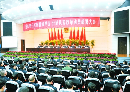 重慶市公安局直屬單位分局機構(gòu)改革動員部署大會現(xiàn)場。重慶市公安局供圖