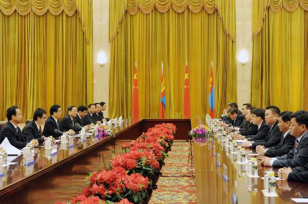 胡錦濤同蒙古總統(tǒng)額勒貝格道爾吉舉行會(huì)談
