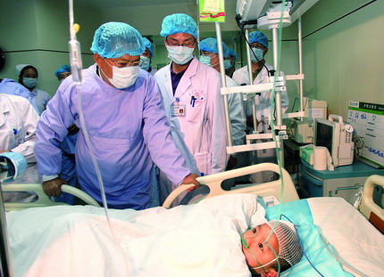 晚上8時(shí)多,趙樂際首先來到3201醫(yī)院,向醫(yī)院負(fù)責(zé)人詳細(xì)了解受傷兒童的救治情況,并逐一看望了正在救治的受傷兒童。他要求舉全省之力,及時(shí)會(huì)診、專人醫(yī)護(hù)、精心照顧,全力救治受傷兒童。在慰問親屬時(shí)他說,發(fā)生這樣的事情,我們大家都很痛心,省市將盡最大努力救治受傷孩子,你們也要保重身體。